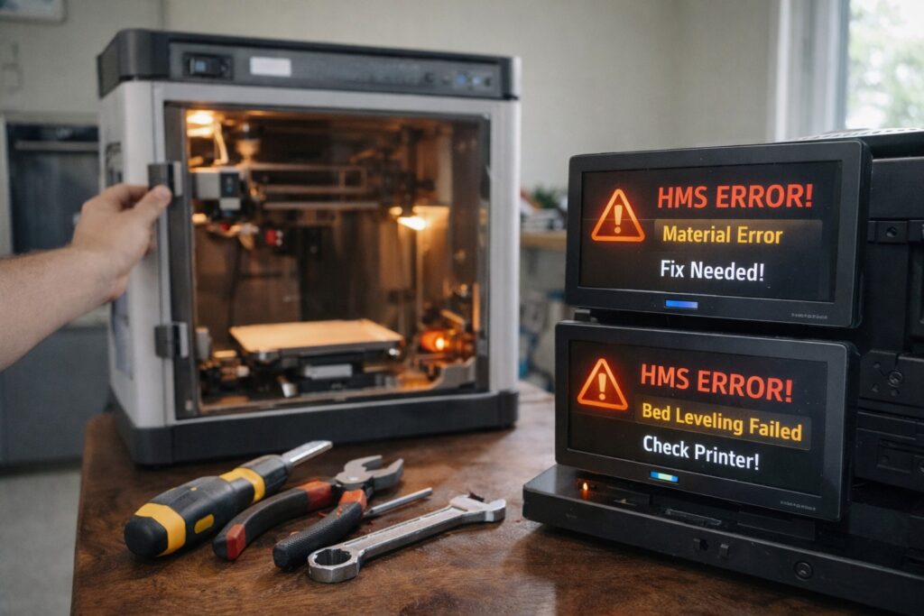 Owning a Bambu Lab X1C, P1S, or A1 is usually a seamless experience. But when the red light flashes and a cryptic “HMS” code appears on the screen, it can be stressful.